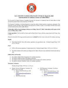 SacandFox Update 3-26-2020